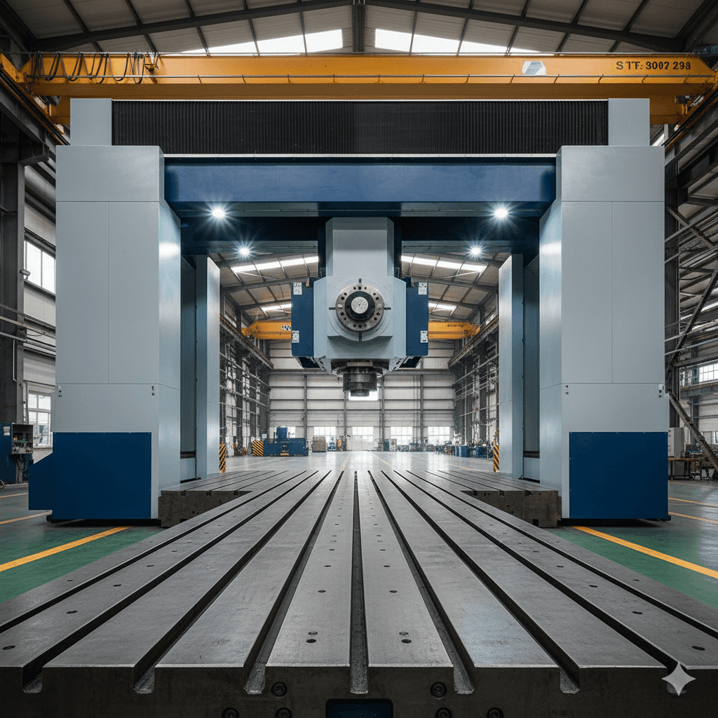 Mastering Large Scale. This gantry machine provides the necessary scale and precision for aerospace and marine component manufacturing. Its modular design allows for custom bed lengths.