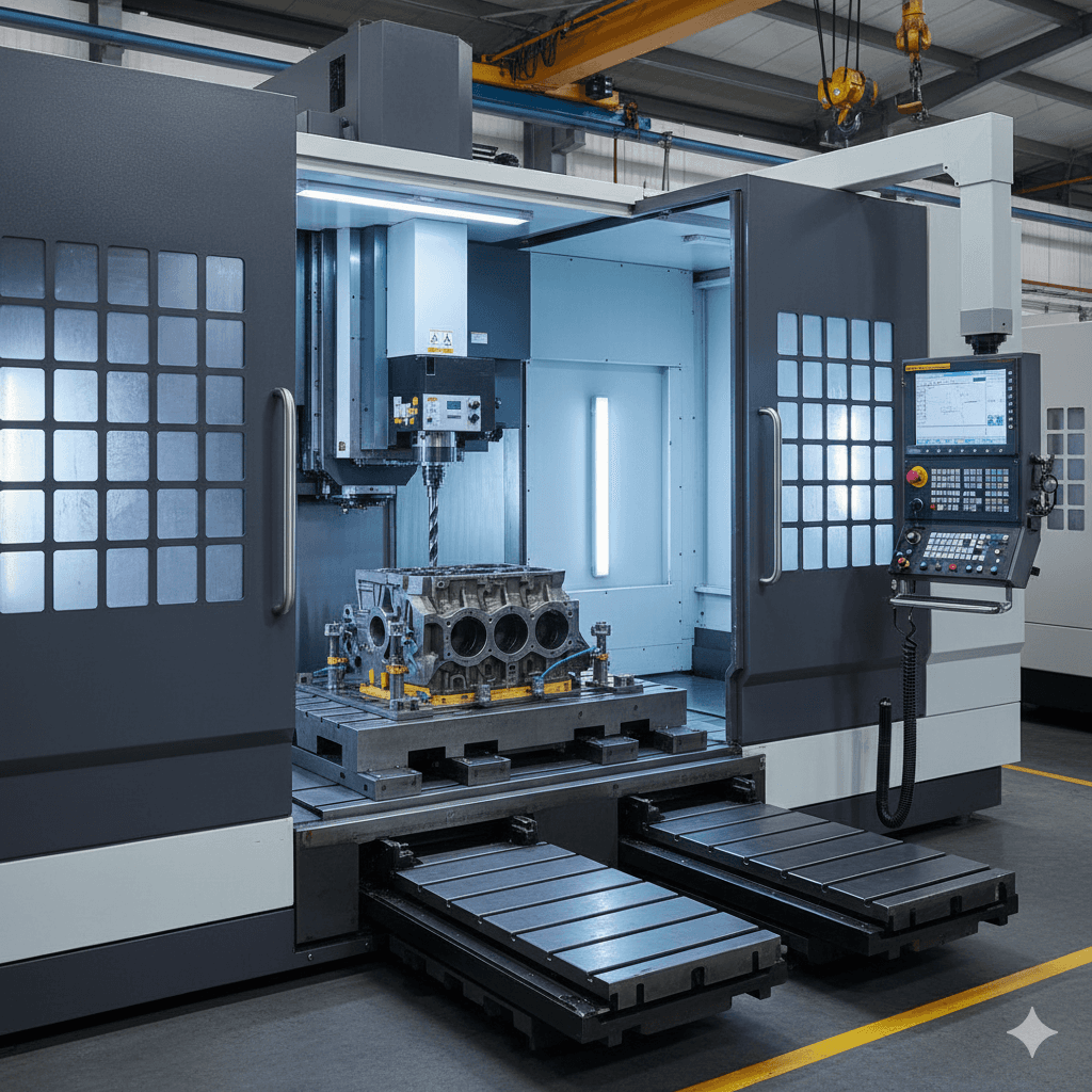 Built for Endurance. The Apex-H 1200 excels in high-volume production, providing superior chip evacuation and thermal stability. The dual pallet system ensures non-stop machining efficiency.